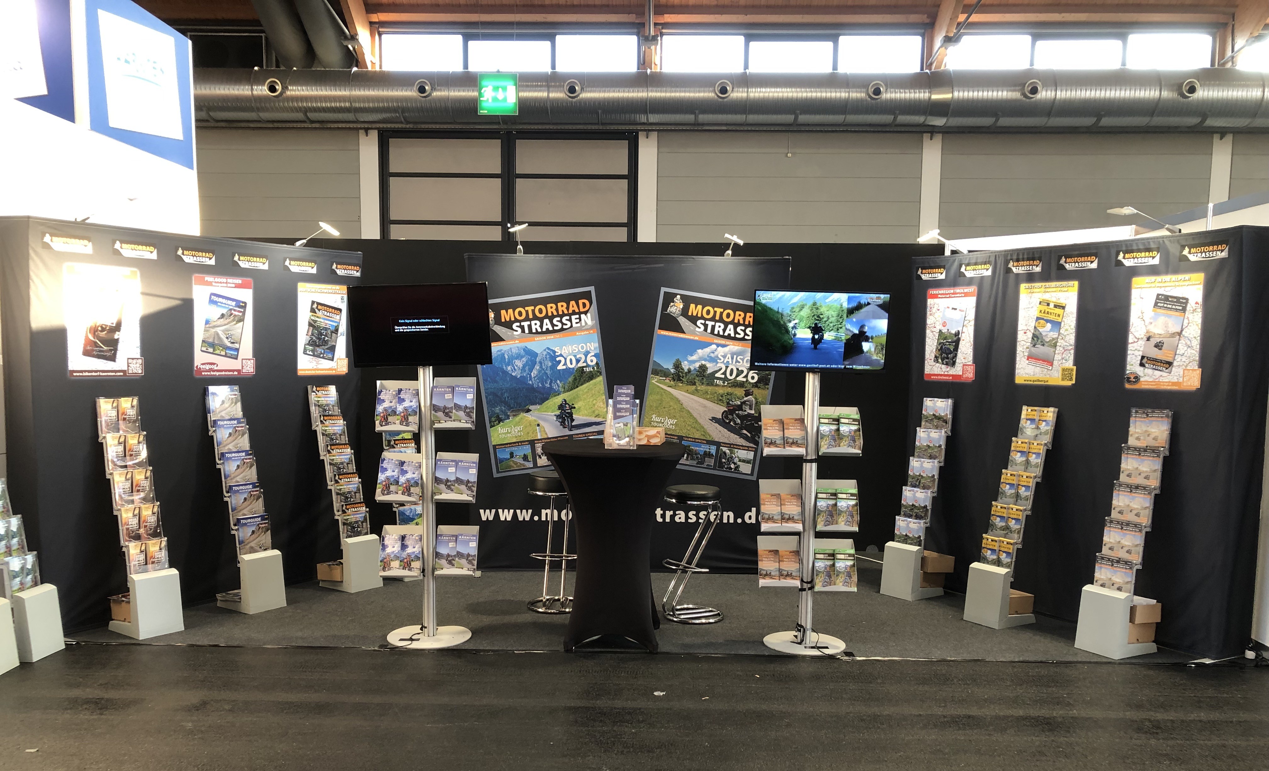 Unseren MOTORRADSTRASSEN-Stand mit jeder Menge kostenloser Tourenkarten findet ihr in der Halle 4 am Stand 32C. Ebenfalls für euch vor Ort Franz Buzzi vom MOTORRADSTRASSEN-Partnerhotel „Die Gailberghöhe“.